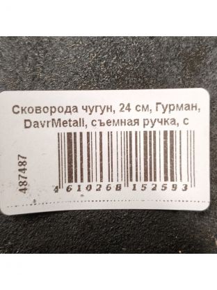 Сковорода чугун, 24 см, Гурман, DavrMetall, съемная ручка, с деревянной ручкой, индукция