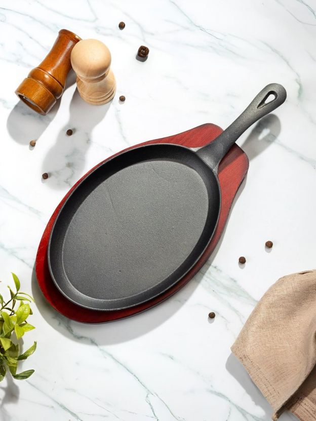Чугунная сковорода 26х18.5х2 см с подставкой — это универсальный кухонный инструмент, который ценят за долговечность и естественные антипригарные свойства, приобретаемые с каждой готовкой. Если вы ищете, какую сковороду выбрать для стейков, рыбы или овощей — чугун без покрытия отлично удерживает температуру и подходит для жарки на газовых, электрических, стеклокерамических плитах, а также на открытом огне и в духовке. Благодаря овальной форме удобно готовить крупные куски мяса и подавать их прямо на стол — деревянная подставка защищает поверхность от нагрева.