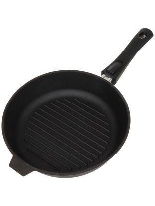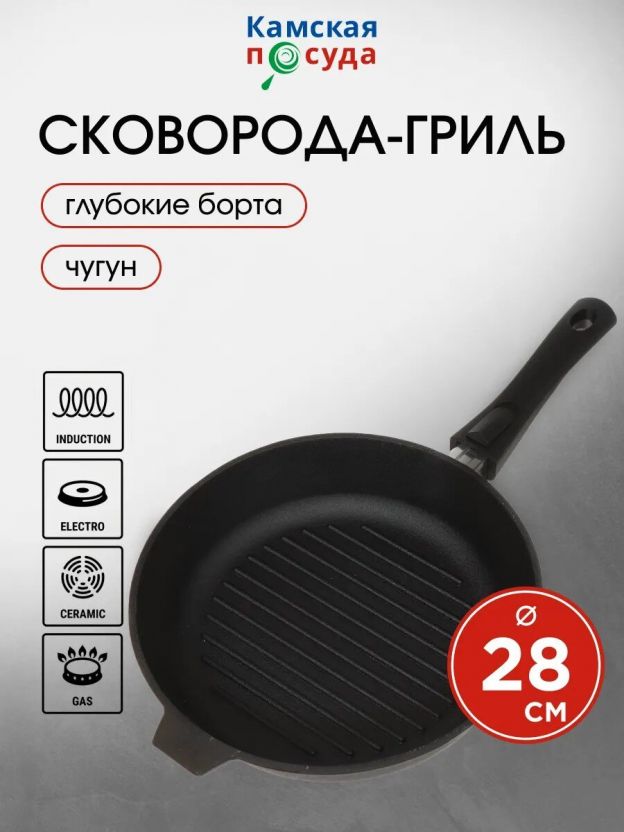 Сковорода-гриль чугун, 28 см, Камская посуда, съемная ручка, круглая, индукция, гс8060