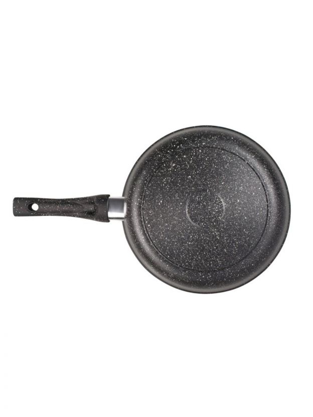 - Толстое дно 6 мм, литой алюминий, диаметр 26 см — равномерный нагрев, долговечность, вес 1,39 кг
