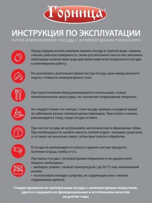 Сковорода подходит для газовых, электрических и стеклокерамических плит, но не для индукции. Круглая форма и диаметр 26 см делают её универсальной для семьи или компании друзей. Отсутствие съёмной и деревянной ручки увеличивает надёжность конструкции. Гарантия производителя — 60 месяцев, что подтверждает качество и доверие к бренду Горница.