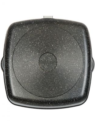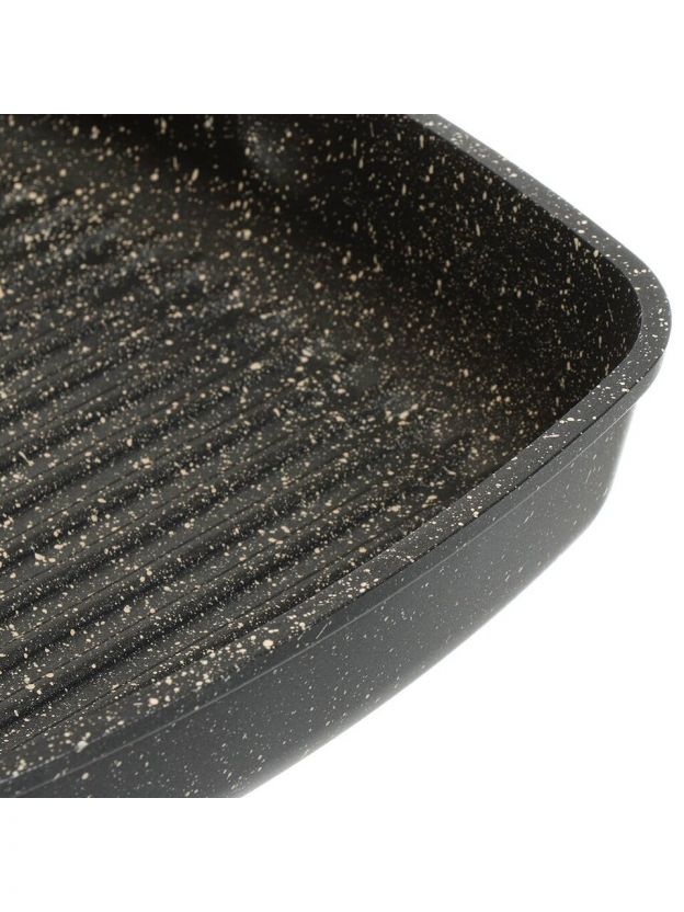 Сковорода-гриль Горница Гранит 26 см — оптимальный выбор для тех, кто ищет, какую сковороду купить для мяса, рыбы или овощей без масла. Литой алюминий обеспечивает быстрый и равномерный прогрев, а мраморное антипригарное покрытие гарантирует легкое отделение продуктов и простую очистку после готовки. Благодаря квадратной форме и глубоким бортам удобно готовить большие порции или блюда с соусом, не опасаясь разбрызгивания.