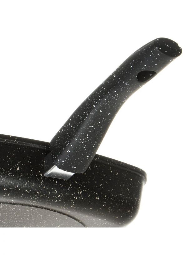 Как выбрать сковороду для гриля? Обратите внимание на толщину дна и стенок: у этой модели дно 6 мм, стенки 4 мм — это обеспечивает долговечность и отсутствие деформации даже при интенсивном использовании. В отличие от обычных тонкостенных сковород, Горница Гранит держит тепло дольше и подходит для духовки. Съемная ручка позволяет экономить место при хранении и использовать сковороду в духовом шкафу, а антипригарное покрытие упрощает уход — можно мыть в посудомоечной машине.
