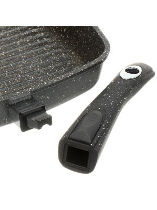 Сковорода-гриль литой алюминий, 26 см, антипригарное покрытие, Горница, Гранит, съемная ручка, квадрат, сг2652аг