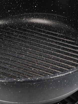 Мраморное покрытие устойчиво к царапинам, не требует масла, легко очищается и сохраняет вкус продуктов, позволяя готовить полезнее.