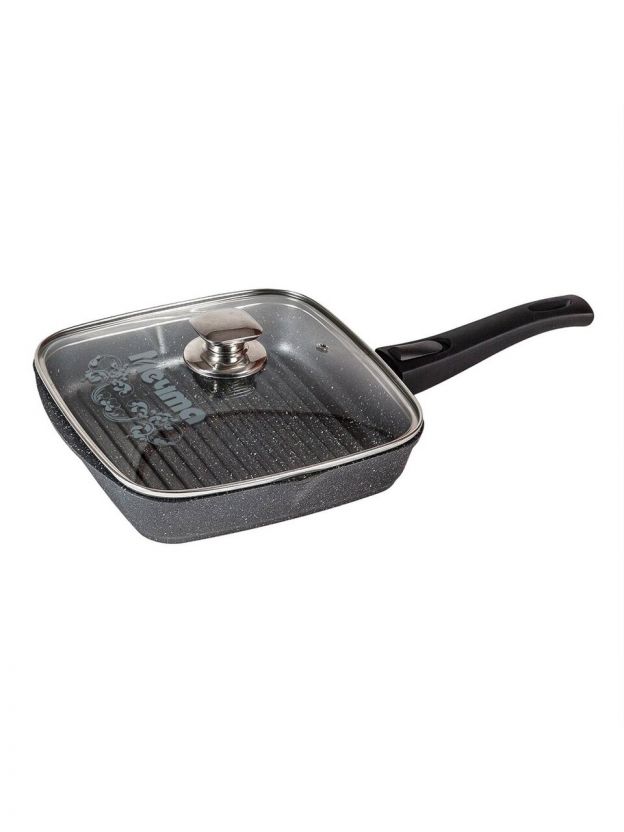 Сковорода-гриль литой алюминий, 28 см, антипригарное покрытие, Мечта, Гранит, с крышкой, съемная ручка, квадрат, С068701