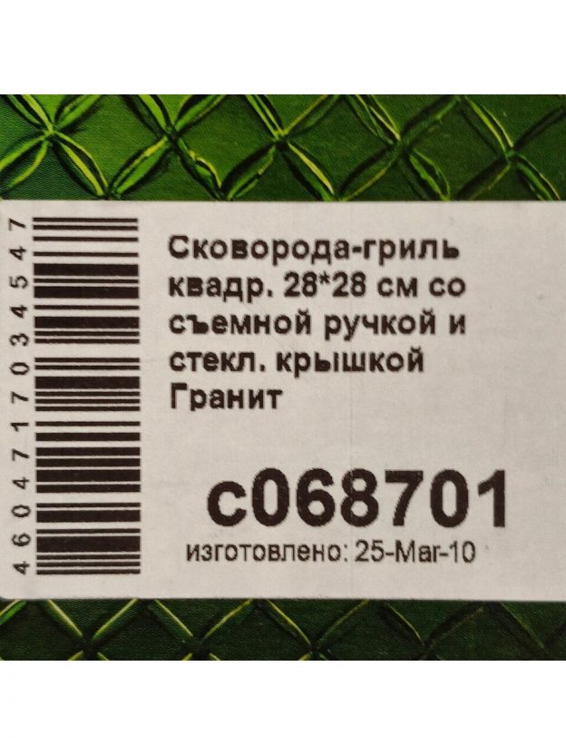 Модель Мечта Гранит 28 см — оптимальный вариант, если вы решаете, какую сковороду-гриль выбрать для семьи: квадратная форма вмещает больше продуктов, а высокая бортовая часть (53 мм) делает сковороду глубокой и удобной для стейков, овощей, курицы. Съемная ручка экономит место на хранении и позволяет использовать сковороду в духовке. В отличие от дешевых аналогов, здесь толщина дна 6 мм и стенок 4 мм, что исключает подгорание и обеспечивает стабильную температуру.