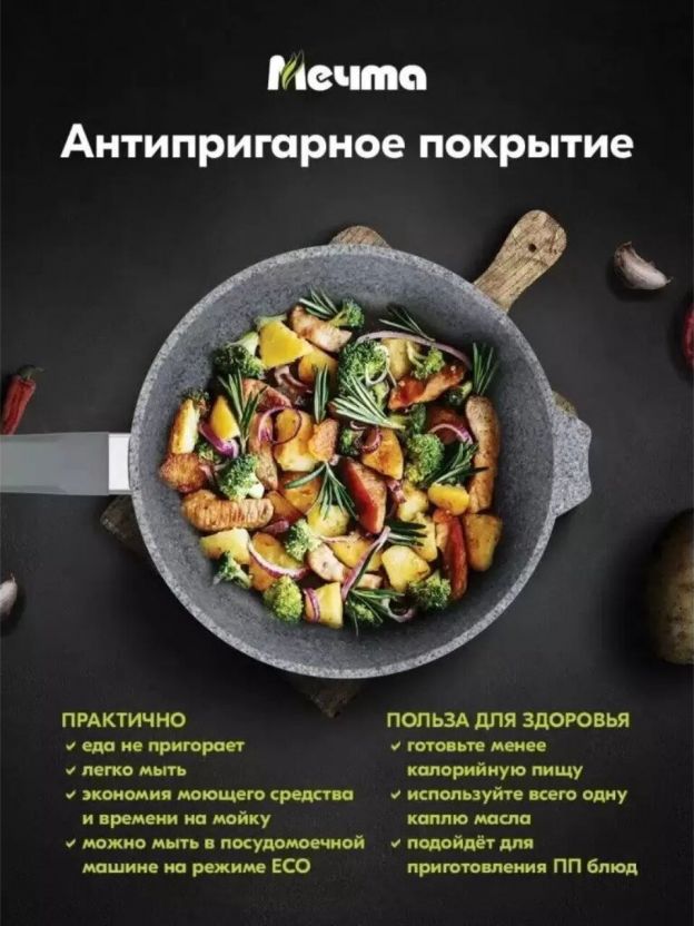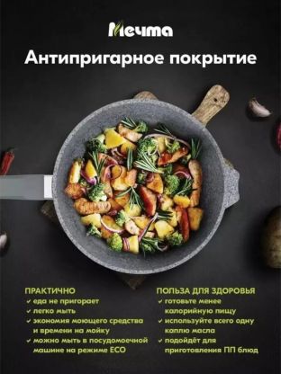 Сковорода Мечта Premium grey — это выбор тех, кто ценит надежность, простоту ухода и универсальность. Оформите заказ сейчас — получите гарантию 12 месяцев и быструю доставку по России.