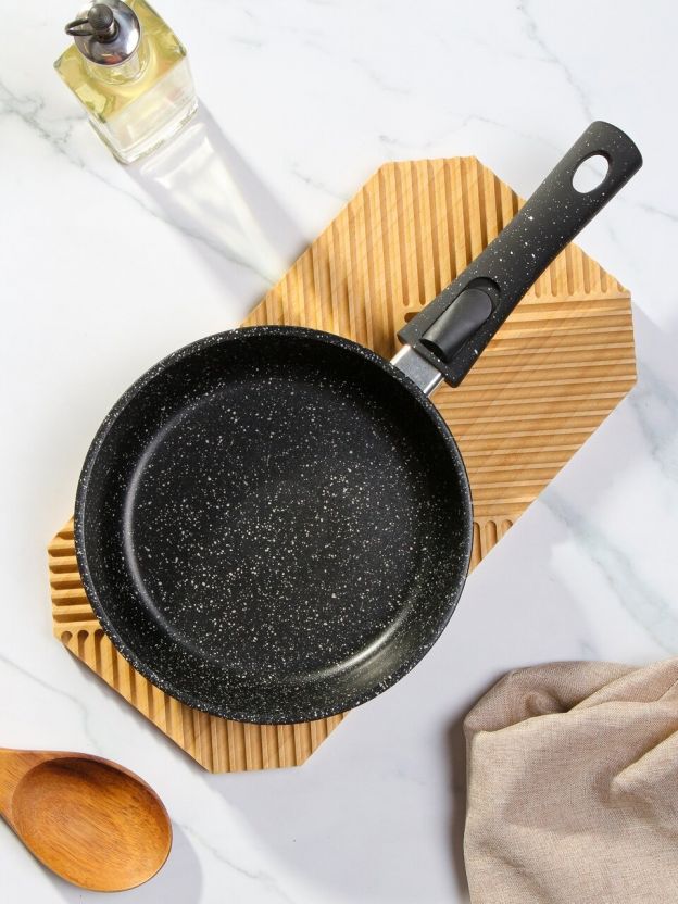 Сковорода литой алюминий 20 см Горница Гранит Induction — антипригарная классика для индукции и любых плит. Съемная ручка, прочность, забота о здоровье.