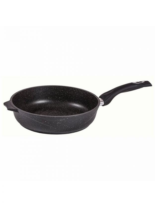 Гранитное покрытие обеспечивает легкое отделение пищи, позволяет готовить с минимальным количеством масла, легко моется даже в посудомоечной машине и устойчиво к царапинам.