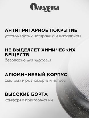 Гранитное покрытие устойчиво к царапинам, обеспечивает легкую очистку и позволяет готовить с минимальным количеством масла, что полезно для здоровья.