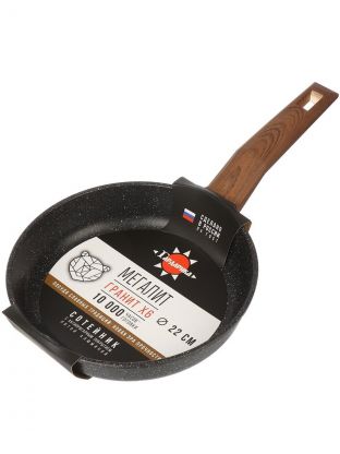 Сковорода Гардарика Мегалит 18 из литого алюминия 22 см — антипригарное гранитное покрытие, soft-touch ручка, оптимально для дома и дачи.