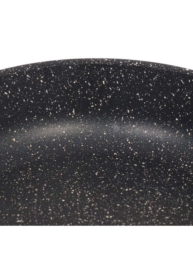 Мраморный слой позволяет жарить без масла, легко очищается даже в посудомоечной машине, устойчив к царапинам и долговечен — идеально для повседневного использования.
