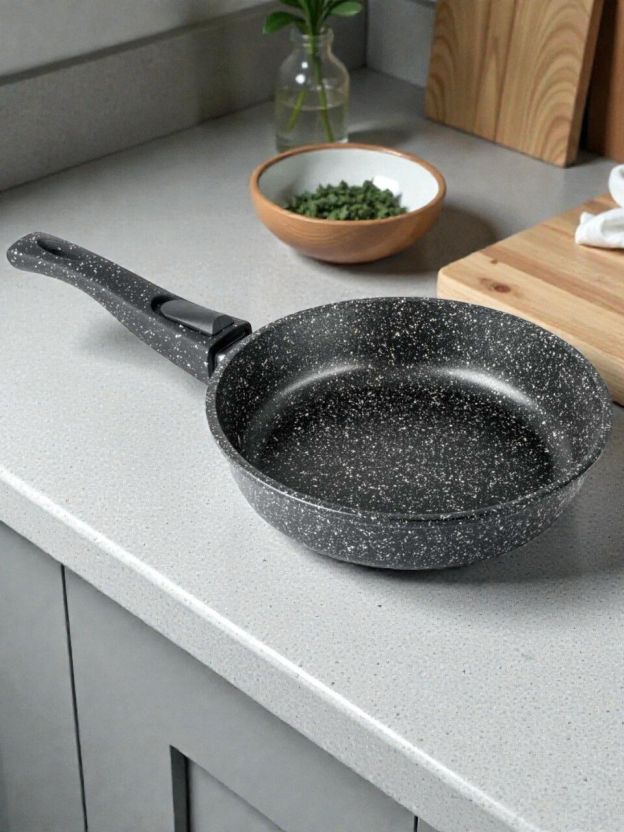 Сковорода Горница Гранит 22 см — литой алюминий, мраморное антипригарное покрытие, съёмная ручка. Лёгкая готовка без пригорания и лишнего масла.
