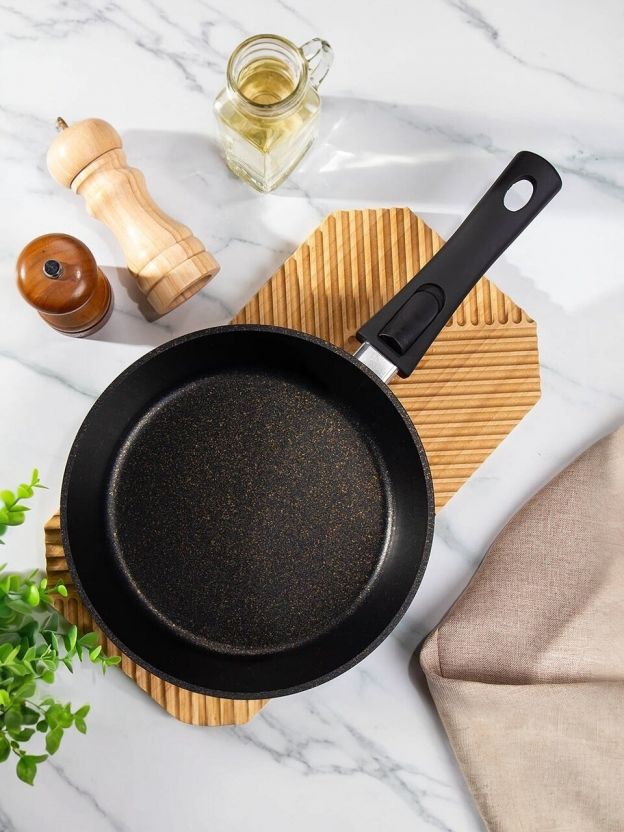 Сковорода литая алюминиевая 22 см Гурман Eclipse: гранитное антипригарное покрытие, съемная ручка, подходит для индукции — удобно, долговечно, выгодно.