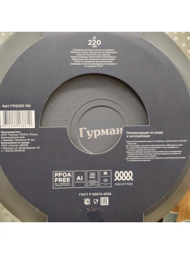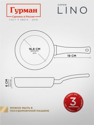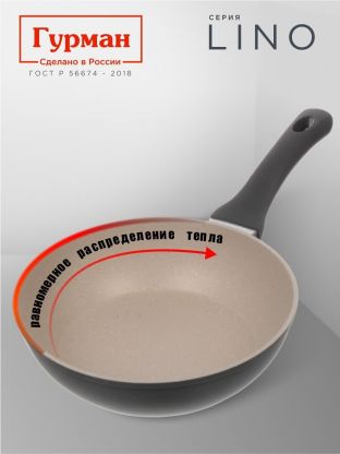 Сковорода литая алюминиевая 22 см Гурман Lino — идеальный выбор для индукции: антипригарное покрытие PFLUON, универсальный диаметр, 3 года гарантии.