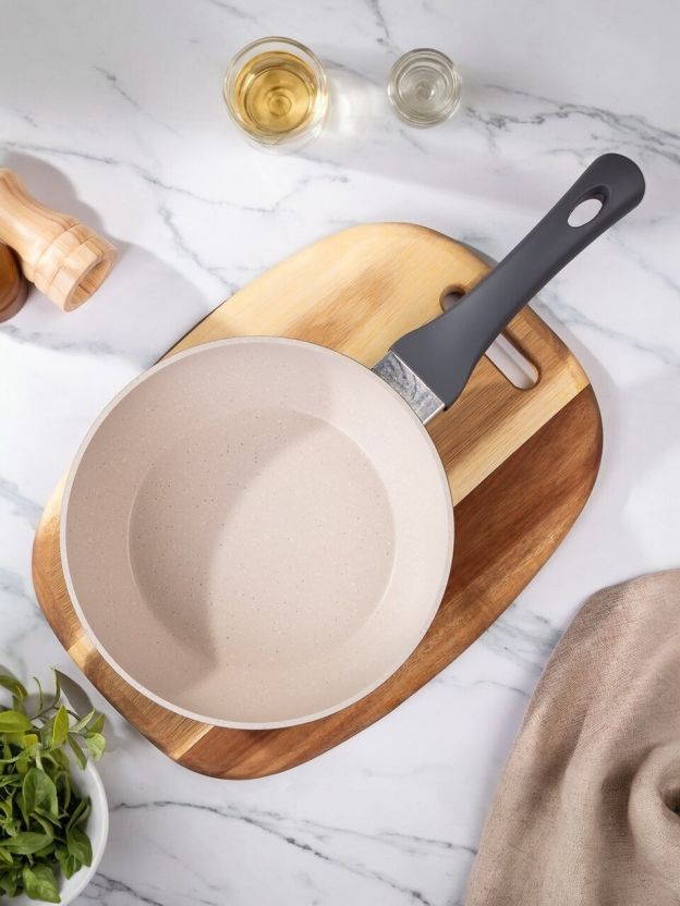 В отличие от обычных штампованных сковород, литой алюминий равномерно распределяет тепло, предотвращая пригорание. Если вы ищете, чем отличается эта сковорода от аналогов с керамикой или тонким дном — здесь толщина дна 3 мм, а стенок 2,4 мм, что гарантирует долговечность и стабильную температуру. Для тех, кто спрашивает «можно ли мыть в посудомоечной машине» — да, уход максимально простой.