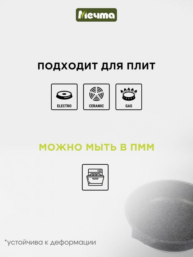 Повысьте уровень своей кухни — закажите сковороду Мечта Premium grey прямо сейчас. Быстрая доставка по России, гарантия 12 месяцев и честная цена — это выгодное решение для тех, кто ценит качество и комфорт.