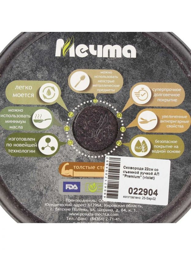 Закажите сковороду литую алюминиевую 22 см Мечта Premium violet — получите выгодную цену, быструю доставку и гарантию качества. Оцените удобство и долговечность уже на первой готовке.