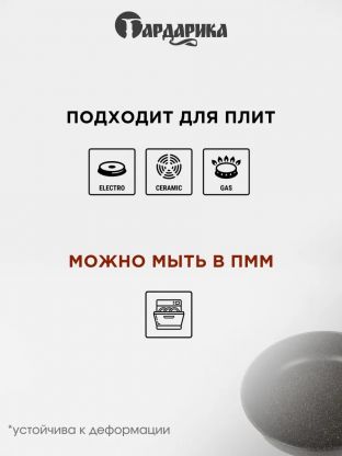 - Гранитное антипригарное покрытие – пища не прилипает, легко мыть даже в посудомоечной машине