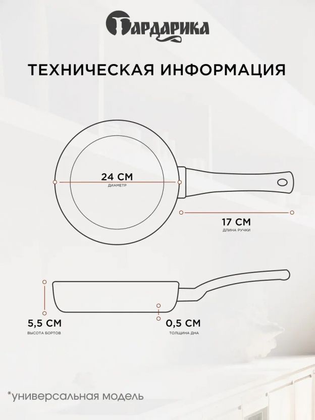Съемная ручка облегчает хранение, транспортировку и позволяет использовать сковороду в духовке. Это удобно для дачи, маленькой кухни или если вы планируете брать сковороду в поездки.