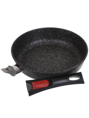 Сковорода литой алюминий, 22 см, антипригарное покрытие, Нева Металл Посуда, Гранит, съемная ручка, индукция, L18022i