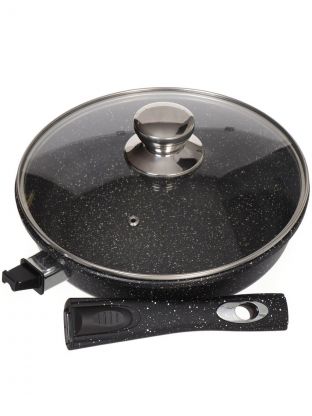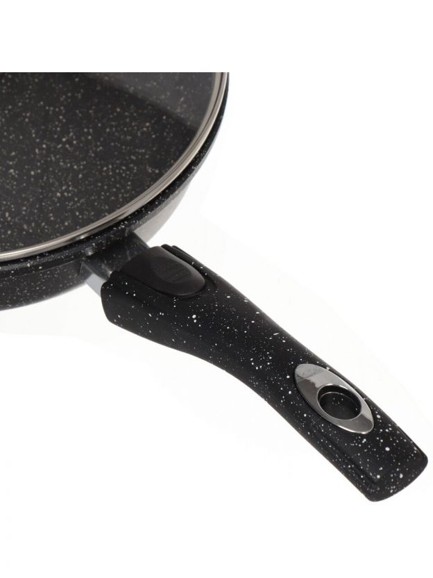 Сковорода Горница Гранит 24 см: литой алюминий, мраморное антипригарное покрытие, крышка и съемная ручка — для идеальной готовки дома и на даче.