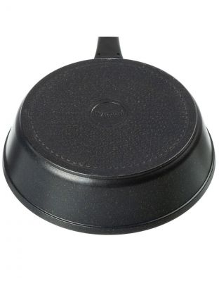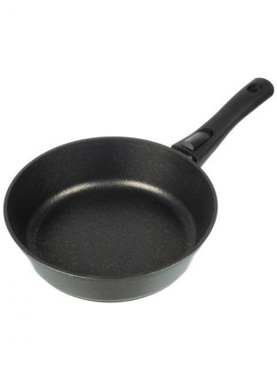 Диаметр 24 см (дно — 20,5 см), высота борта 70 мм. Благодаря литому алюминию сковорода легкая и удобная в использовании, оптимальна для семьи из 2-4 человек.