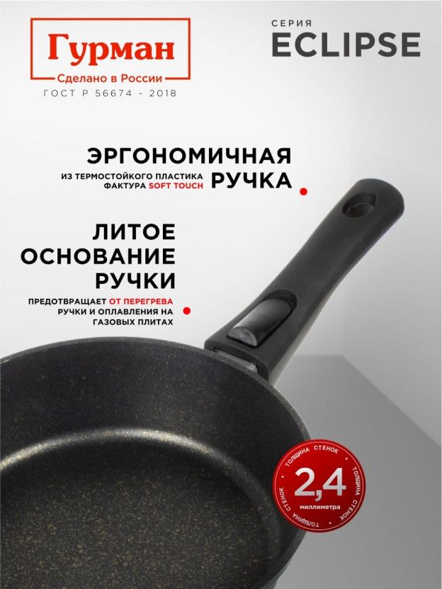 Повысьте комфорт на кухне — закажите сковороду Гурман Eclipse 24 см с гарантией 36 месяцев. Быстрая доставка, оптимальная цена и универсальное применение — выгодное решение для вашего дома!