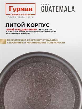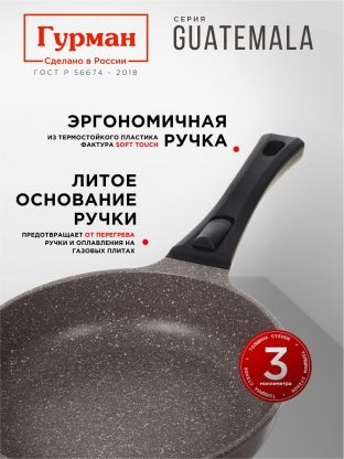 Закажите сковороду Гурман Guatemala — получите универсальный инструмент для кухни с гарантией 36 месяцев и быстрой доставкой. Успейте купить недорого — качество проверено экспертами и подтверждено отзывами покупателей.