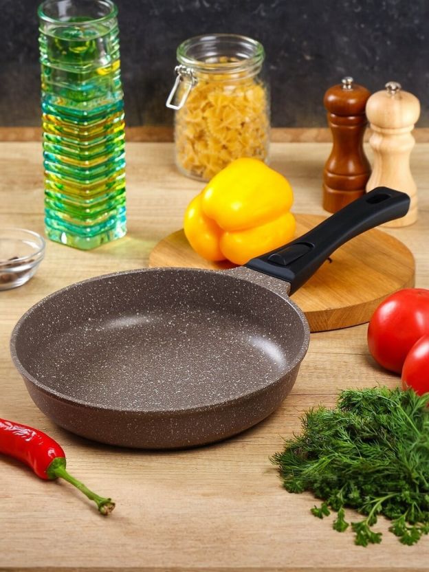 Сковорода литой алюминий 24 см Гурман Guatemala: антипригарное мраморное покрытие, съемная ручка, 3 года гарантии — удобно для дома и дачи.