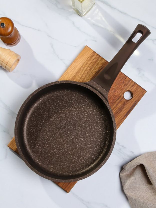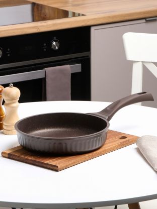 Сковорода литая алюминиевая Kukmara Stella 24 см с антипригарным гранитным покрытием — идеальное решение для вкусных блюд без пригорания и лишнего масла. Прочная, долговечная, стильный цвет мокко.