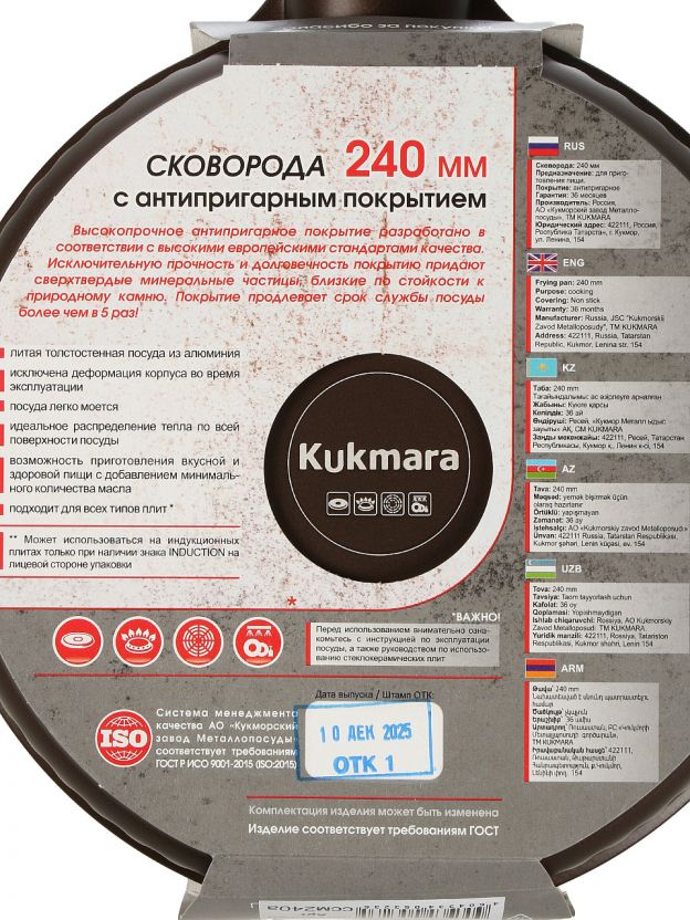 Сковорода литой алюминий, 24 см, антипригарное покрытие, Kukmara, Stella, мокко, ссм240а