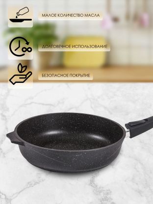 Сковорода 24 см Мечта Гранит black: литой алюминий, антипригарное гранитное покрытие, съемная ручка — идеальное решение для дома и дачи