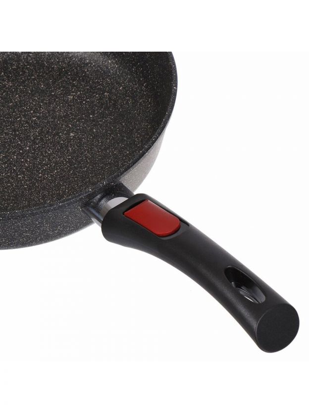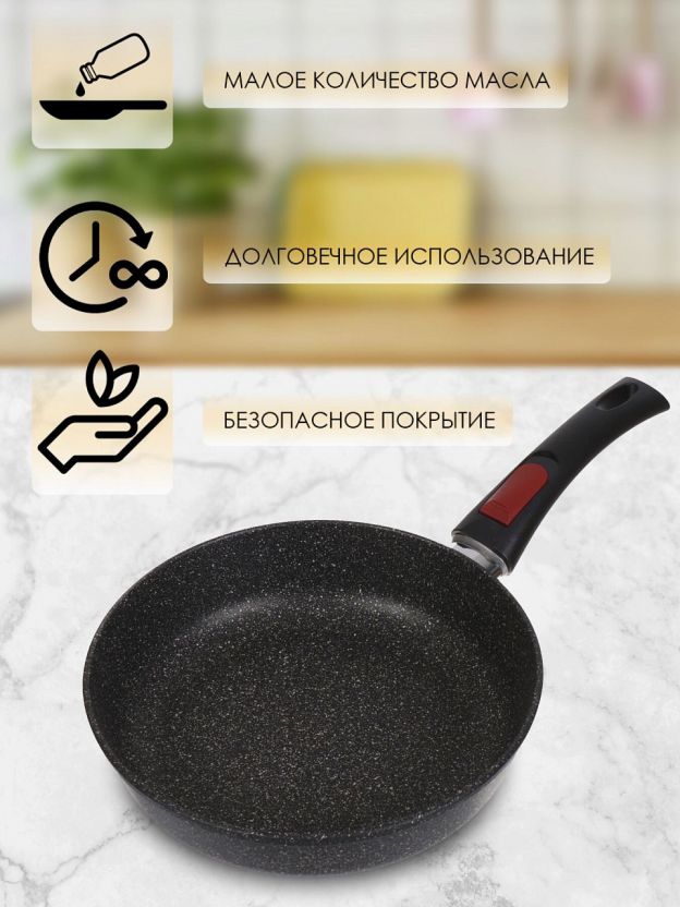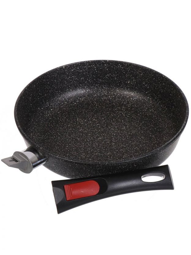 Сковорода 24 см из литого алюминия с гранитным антипригарным покрытием и съемной ручкой — идеальный выбор для индукции и универсального использования дома и на даче.