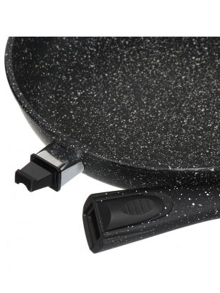 Сковорода Горница Гранит 26 см — литой алюминий, мраморное антипригарное покрытие, съемная ручка. Универсальное решение для дома и дачи, прослужит до 5 лет.