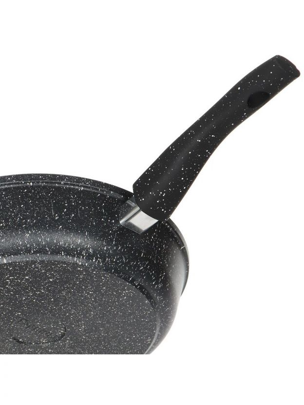 Сковорода Горница Гранит диаметром 26 см — универсальный выбор для приготовления мяса, рыбы, омлета, оладий и других блюд. Благодаря литому алюминию и мраморному антипригарному покрытию, пища не пригорает, а мытье занимает минимум времени. Как использовать сковороду с мраморным покрытием? Просто снимите ручку и используйте её в духовке — это удобно для запекания и экономии места.