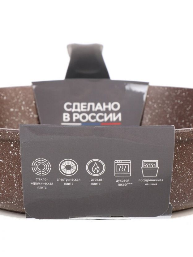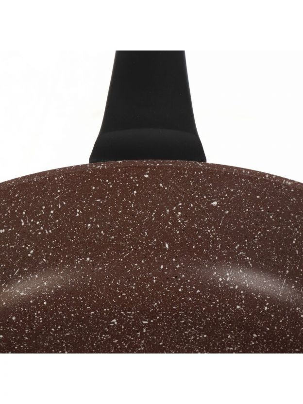 Сковорода «Горница Шоколад» 26 см: литой алюминий, мраморное антипригарное покрытие, 6 мм дно — для идеальной жарки без пригорания и долгой службы.