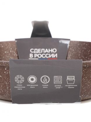 Используется мраморное антипригарное покрытие — оно устойчиво к царапинам, не требует большого количества масла и облегчает мытьё даже в посудомоечной машине.