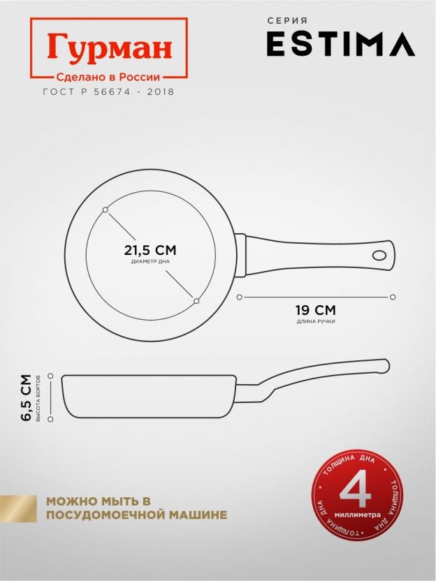 Сковорода Гурман Estima из литого алюминия — оптимальный выбор для тех, кто ищет, какую сковороду выбрать для индукционной плиты или универсального использования. Благодаря гранитному антипригарному покрытию блюда не пригорают, а уход занимает минимальное время: сковороду можно мыть даже в посудомоечной машине. Толстое дно (4 мм) обеспечивает равномерный прогрев, что особенно важно для жарки мяса, рыбы, яичницы и оладий без риска пересушить продукты.