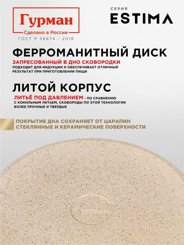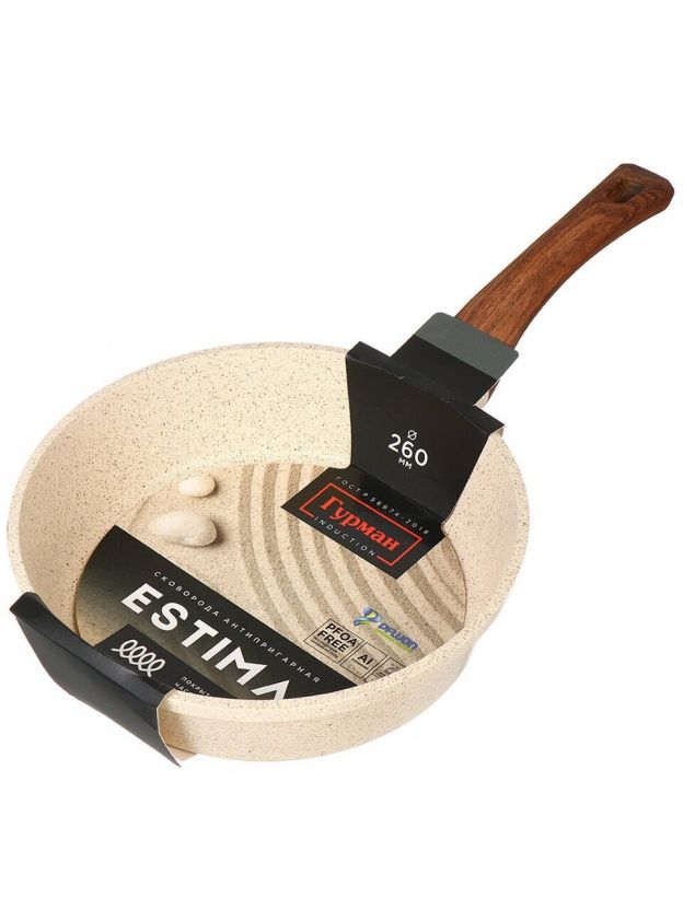 Сковорода литой алюминий, 26 см, антипригарное покрытие, Гурман, Estima, бежевая, индукция, ГМ2601 ЭБИ