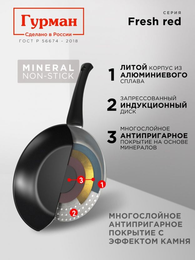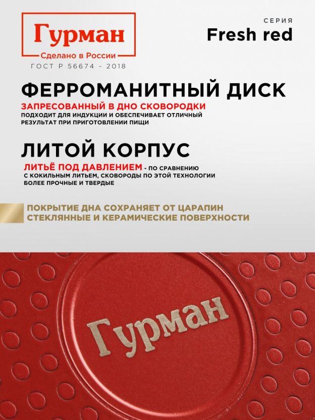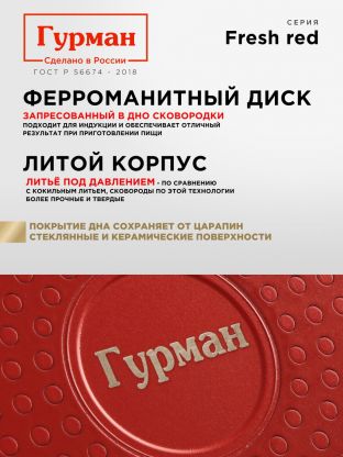 Гурман Fresh red — это выбор для тех, кто ценит комфорт и экономию времени на кухне. Оформите заказ сейчас, чтобы получить надежную сковороду по выгодной цене с гарантией производителя.
