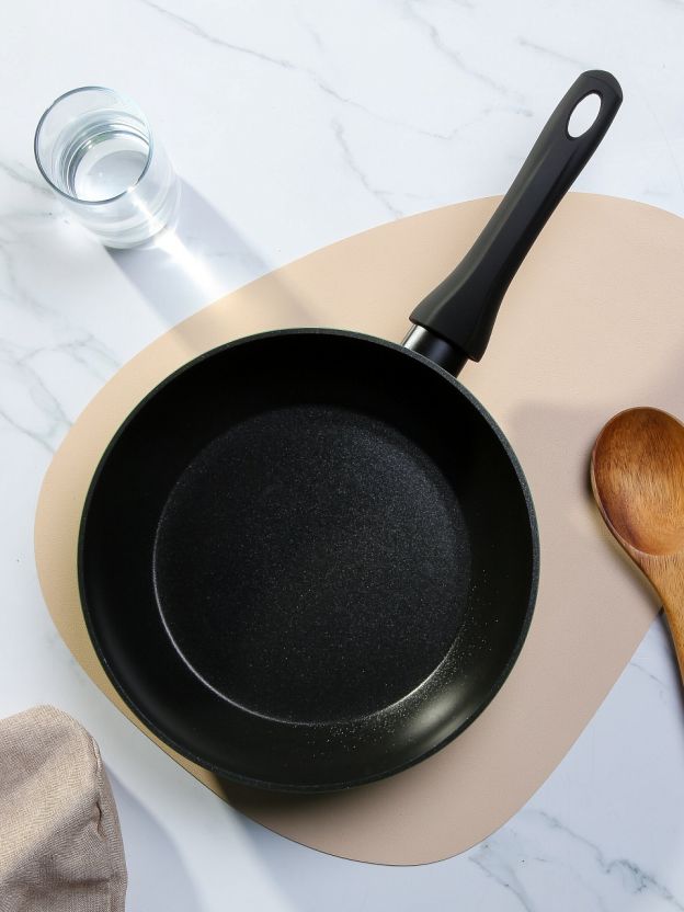 Современное антипригарное покрытие позволяет готовить с минимальным количеством масла, легко очищается и предотвращает пригорание пищи — это удобно и полезно для здоровья.