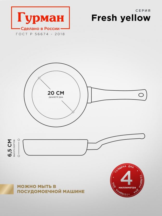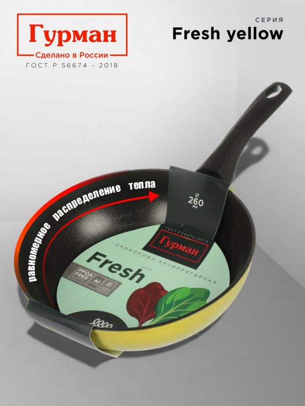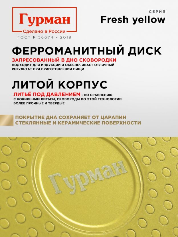 Закажите сковороду Гурман Fresh yellow — получите надёжный кухонный инструмент с гарантией производителя и быстрой доставкой. Успейте купить по выгодной цене!