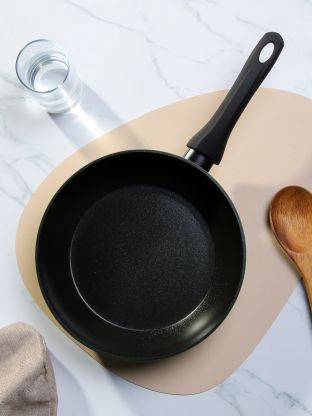 • Оптимальный размер 26 см и литой алюминий — равномерно прогревается, служит дольше обычных сковород