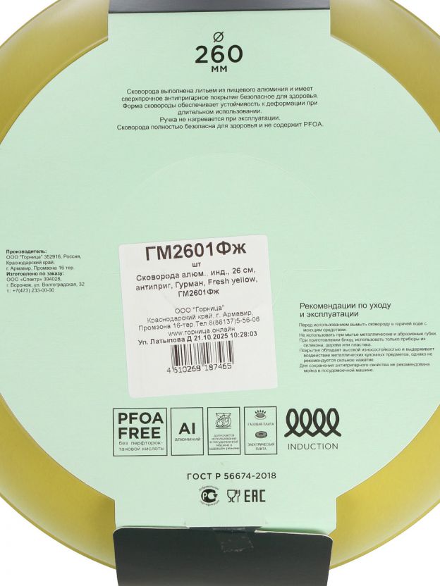 Сковорода литой алюминий, 26 см, антипригарное покрытие, Гурман, Fresh yellow, индукция, ГМ2601Фж