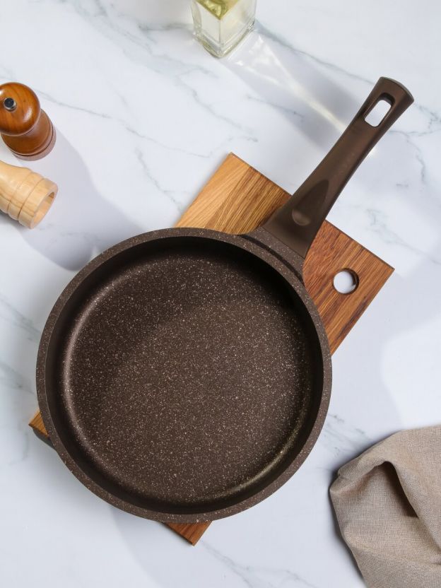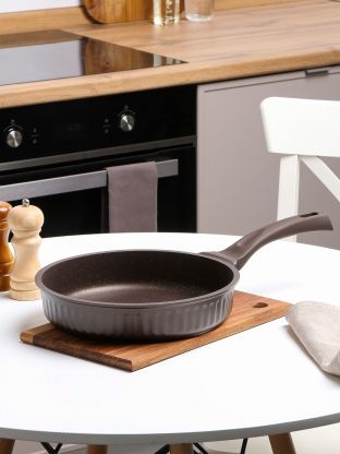 Литая сковорода Kukmara Stella 26 см с антипригарным гранитным покрытием: идеальный выбор для готовки без масла, стильный цвет мокко.