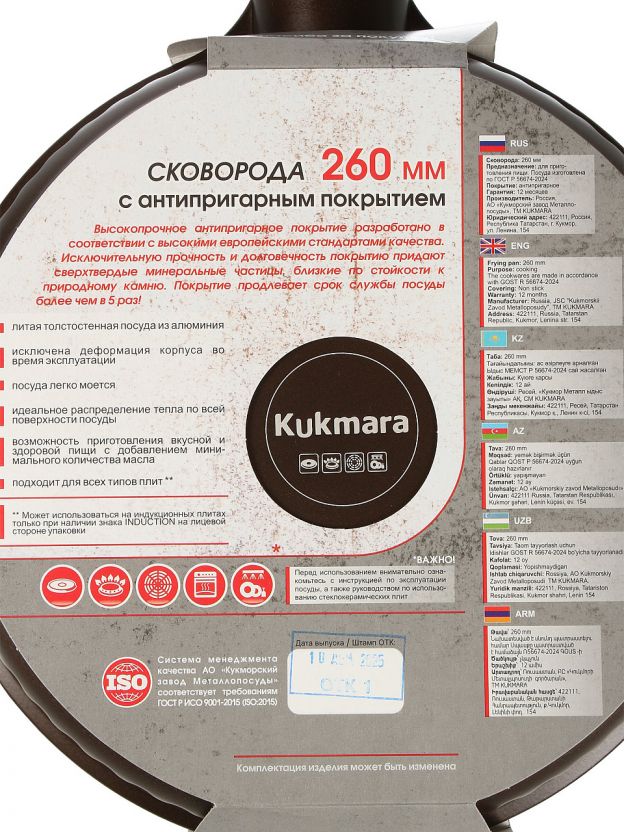 Какой размер и высота у сковороды Kukmara Stella?