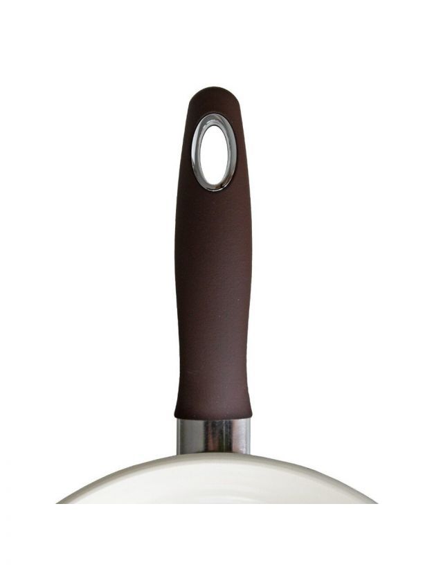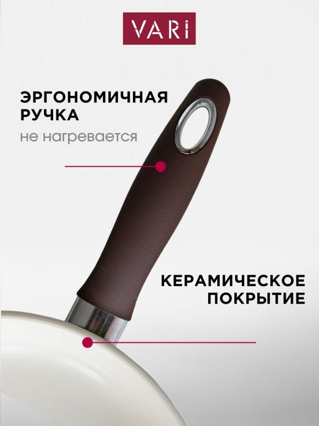 Чем отличается керамическая сковорода от классических моделей? Керамика экологична, не выделяет вредных веществ при нагреве, а толстое дно (6 мм) и борта (4,5 мм) позволяют использовать сковороду для жарки, тушения, запекания. Часто спрашивают: подходит ли эта сковорода для индукции? Нет, она совместима только с газовыми, электрическими и стеклокерамическими плитами. Для подарка эта сковорода — практичный выбор: стильный коричневый цвет, бренд Vari, гарантия 12 месяцев.