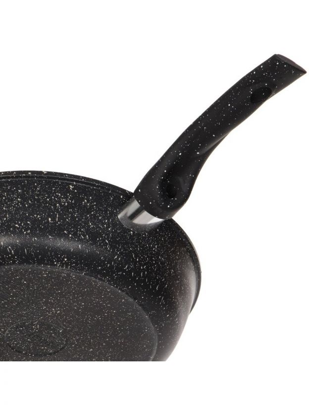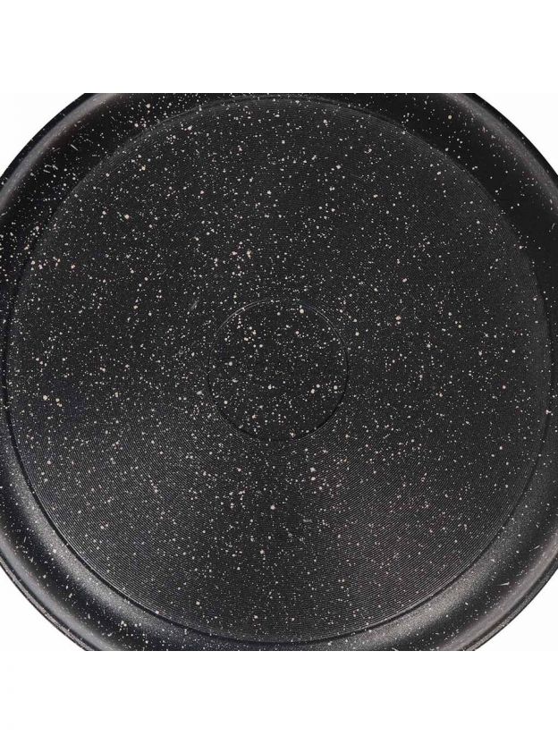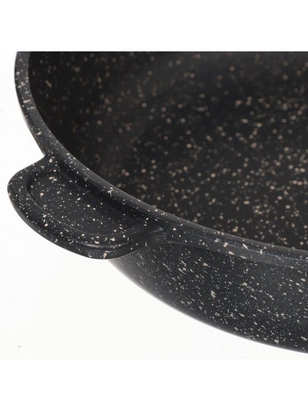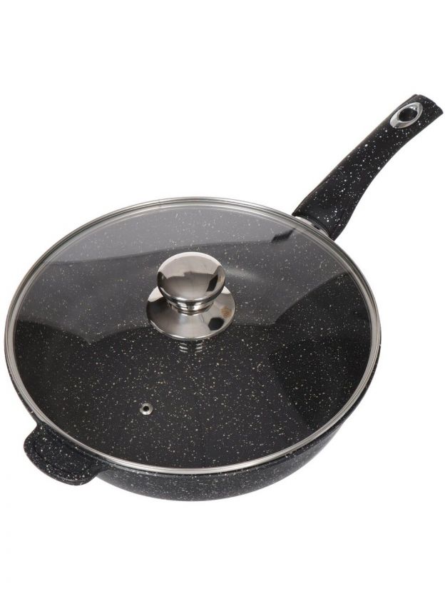 Сковорода Горница Гранит 28 см: литой алюминий, мраморное антипригарное покрытие, крышка в комплекте — идеальный выбор для кухни и дачи.